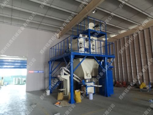 保溫砂漿設(shè)備生產(chǎn)線主要是由提升機(jī)、預(yù)混倉(cāng)、小料倉(cāng)、混合機(jī)、成品倉(cāng)、包裝機(jī)、除塵器、電控柜、氣相平衡系統(tǒng)組成。采用雙軸槳葉高效混合機(jī),不破壞物料的原始狀態(tài),確保了砂漿的保溫系數(shù)不會(huì)因保溫原料的形狀破壞而降低,確保了產(chǎn)品的保溫效果。